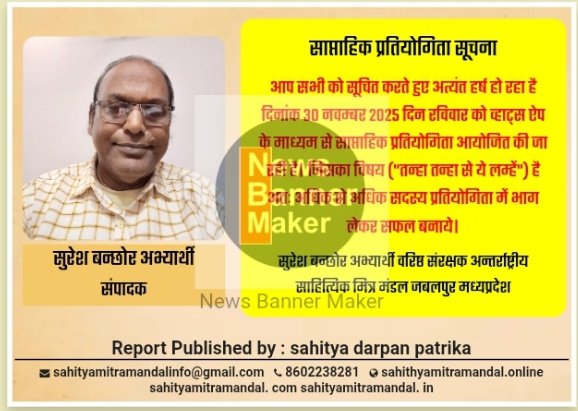 साहित्यिक मित्र मंडल जबलपुर में प्रतियोगिता का आयोजन होना निर्धारित किया गया है।