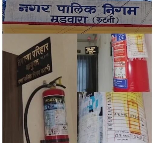 कटनी। शहर में फायर सेफ्टी को लेकर लोगों को जागरूक करने और नियमों के पालन की नसीहत देने वाला नगर निगम मुख्यालय ही अब खुद असुरक्षित साबित हो रहा है। आयुक्त, महापौर और अध्यक्ष के चैंबर के बाहर एक्सपायर फायर सेफ्टी सिलेंडर लटकते पाए गए हैं। यह नज़ारा नगर निगम की बढ़ती लापरवाही और सुरक्षा के प्रति उदासीन रवैये को उजागर करता है।फायर सेफ्टी की “अलख जगाने” की बात करने वाला वही विभाग अब आंख मूंदे बैठा नजर आ रहा है। आम नागरिकों और व्यापारिक प्रतिष्ठानों पर फायर सेफ्टी नियमों के पालन का दबाव बनाने वाला निगम अपने ही दफ्तर में सुरक्षा मानकों की अनदेखी कर रहा है।