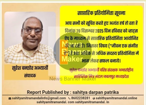 साहित्यिक मित्र मंडल जबलपुर में प्रतियोगिता का आयोजन होना निर्धारित किया गया है।