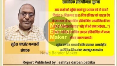 साहित्यिक मित्र मंडल,जबलपुर समूह 1,2,3,4,5 में गूगल मीट ऐप के माध्यम से काव्य गोष्ठी का आयोजन किया जाएगा।नाम केवल दिनांक 13 जनवरी 2026 दोपहर 02:00 तक ही लिखे जायेंगे