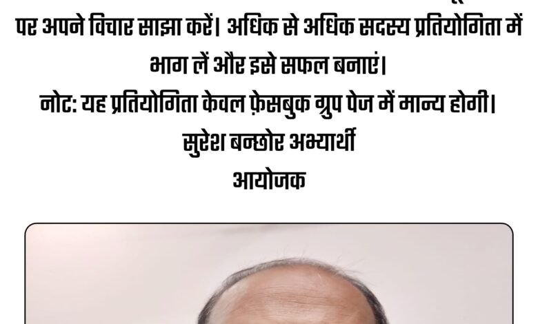 नोट: व्हाट्सएप समूह में इस प्रतियोगिता के संबंध में किसी भी प्रकार की वार्ता स्वीकार नहीं की जाएगी। सभी जानकारी और अपडेट्स फेसबुक ग्रुप या पेज पर ही उपलब्ध होंगी।