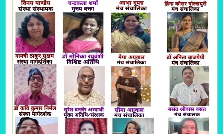 साहित्यिक मित्र मंडल जबलपुर द्वारा पटल 1,2,3,4,5 में गूगल मीट ऐप द्वारा भव्य कवि सम्मेलन का आयोजन किया जा रहा है।इस कार्यक्रम में मुख्य वक्ता चन्द्रकला शर्मा जी, विशिष्ट अतिथि डॉ मोनिका रघुवंशी जी मुख्य अतिथि सुरेश बन्छोर अभ्यार्थी जी अध्यक्षा शशिकला श्रीवास्तव जी करेगी।मंच संचालन मुख्य संचालिका आभा गुप्ता जी,हिना कौसर गोरखपुरी जी,मेघा अग्रवाल जी,सीमा अग्रवाल धारुहेड़ा जी,