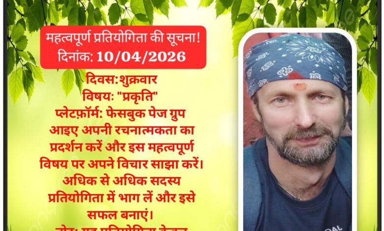 दिनांक 10 अप्रैल 2026 शुक्रवार को फेसबुक पेज पर प्रतियोगिता आयोजित हो रही है।
